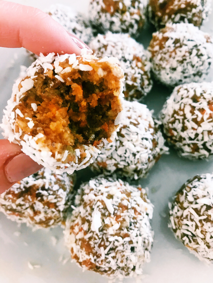 - Scoop and roll about 2 tbsp of mixture into a ball and roll each one in a bowl of shredded coconut flakes to coat.